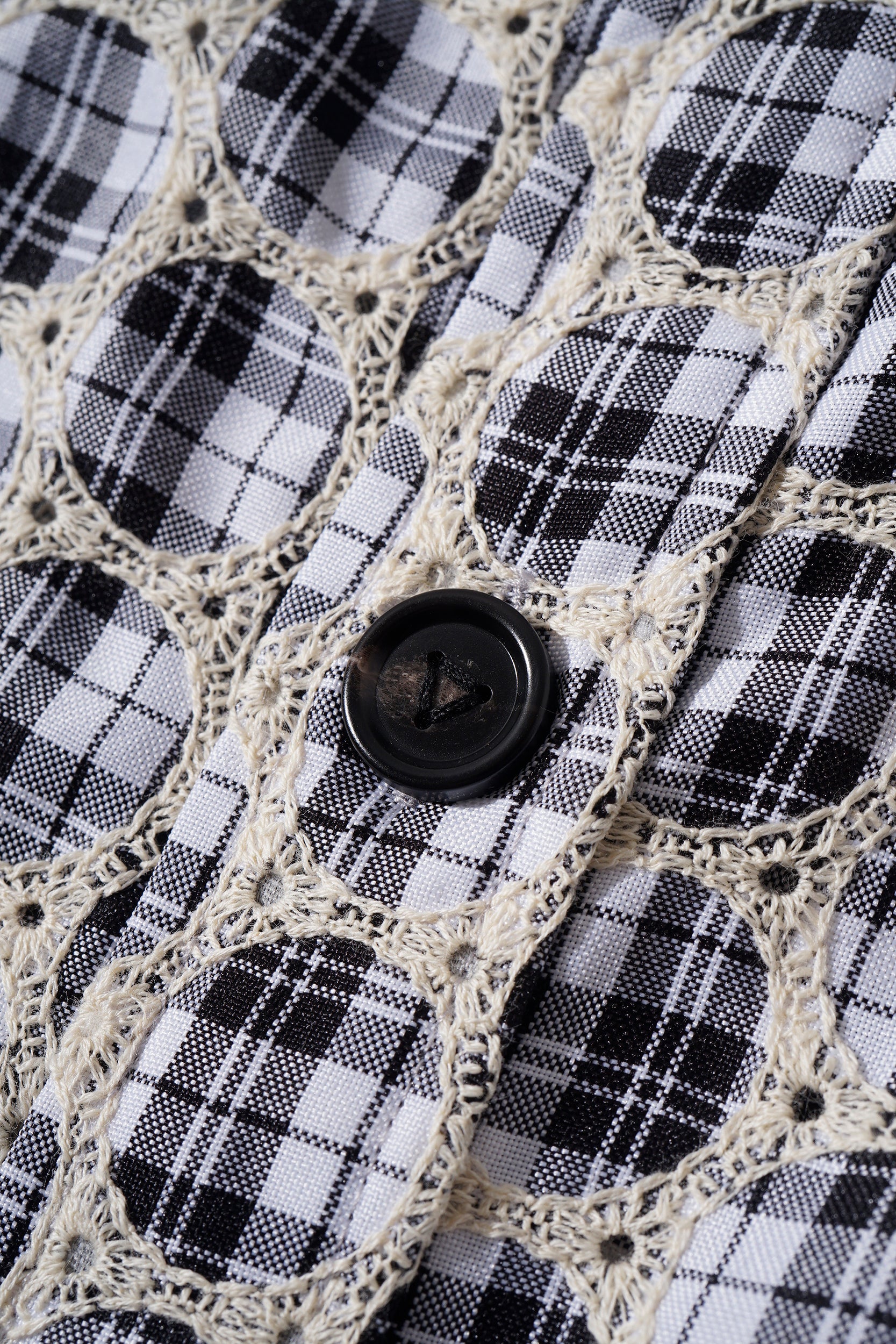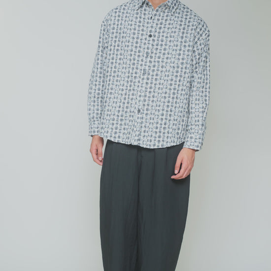 Crafted from an intricate plaid base layered with circular lace embroidery, the Hollow Weave Shirt balances structure and openness. The unique interplay between pattern and transparency offers texture, depth, and lightness. Designed with a relaxed silhouette and refined proportions, it captures FAIRDIM’s continued exploration of tactility and quiet form.