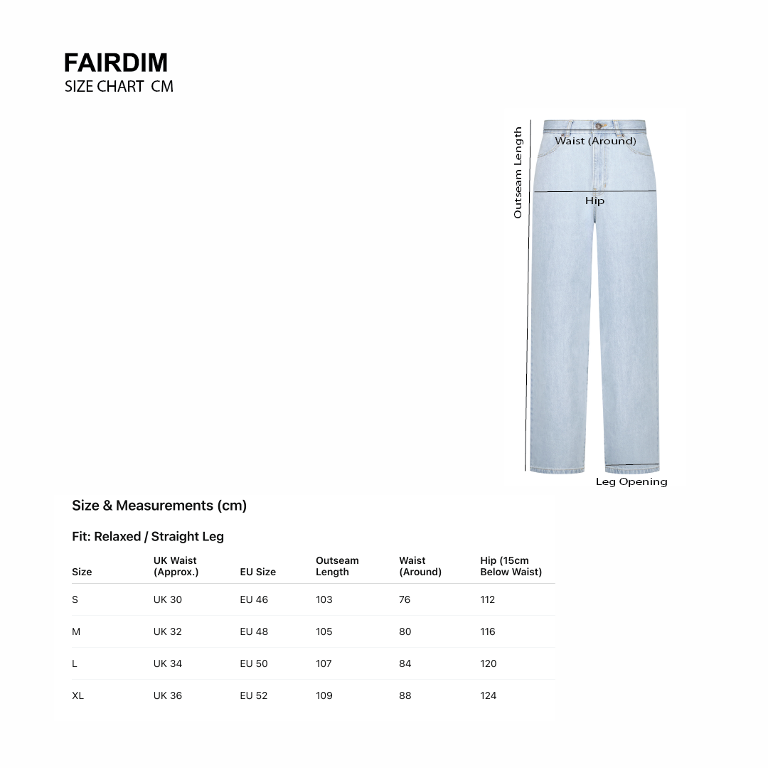 For the most accurate fit, we recommend comparing these measurements with a similar pair of jeans you already own.